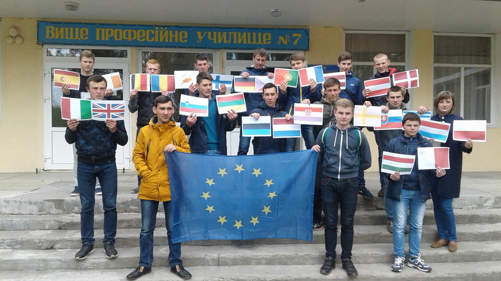 15 травня 2017 року учні ВПУ №7 м. Калуша на лінійці, піднімаючи прапор України, учні вшанували прапор Євросоюзу як символ того, що Україна – європейська країна.