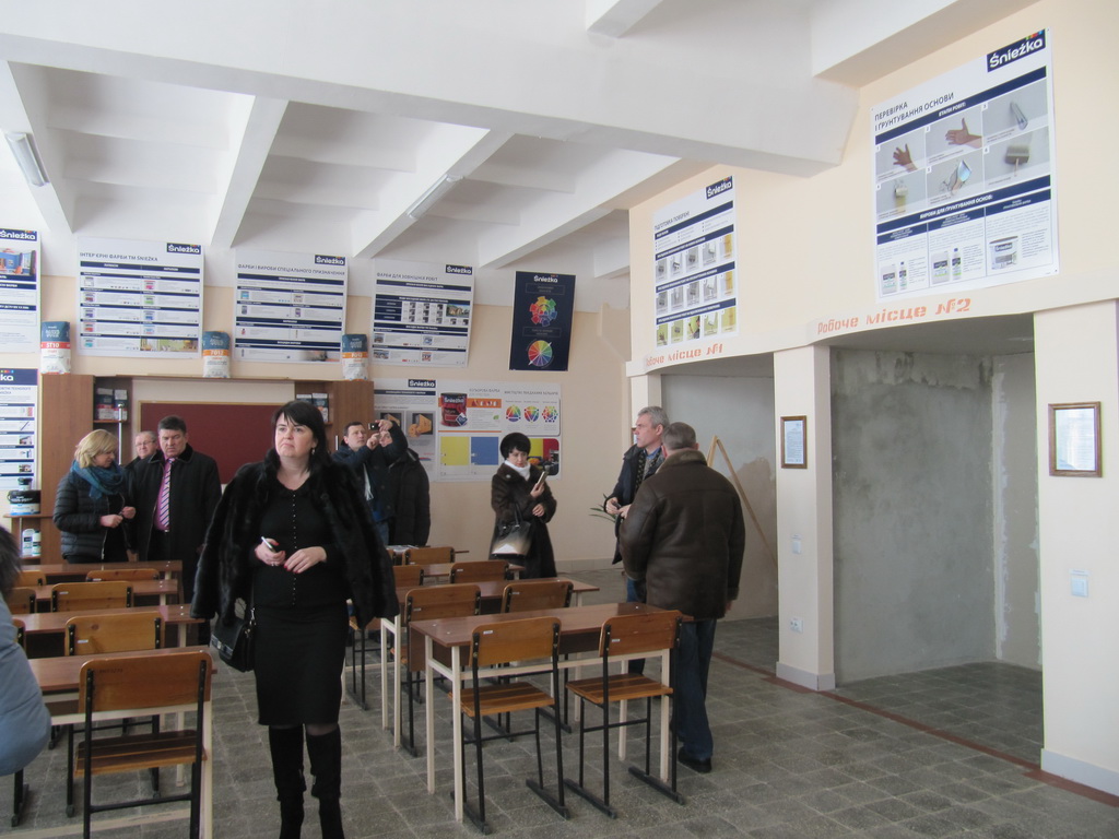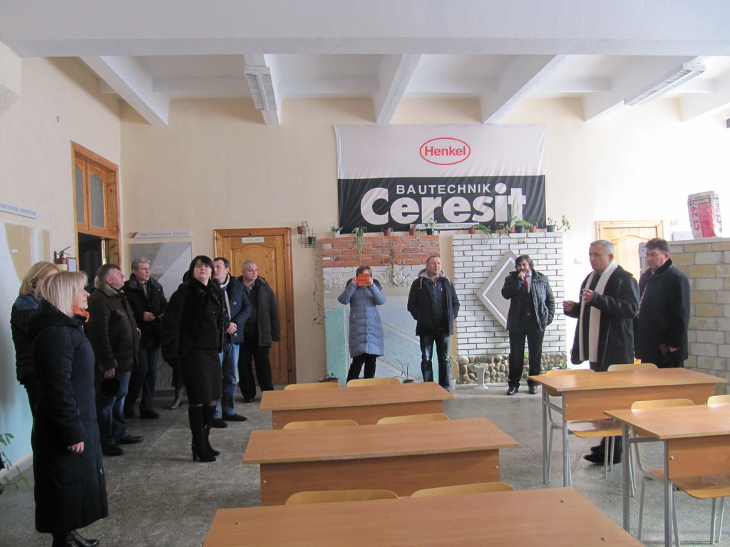 Директор ВПУ №7 м. Калуша Володимир Мельник зустрів гостей та поділився досвідом щодо нових підходів в організації навчально-виробничого процесу закладу, ознайомив їх з навчально-матеріальною базою училища. Гості відвідали регіональні навчально-практичні будівельні центри, які функціонують на базі ВПУ №7 м. Калуша: «Knauf», «Хенкель Баутехнік (Україна)», «Śnieżka», навчально-практичний центр кулінарних професій, побували в навчальних кабінетах та майстернях училища, відзначили оригінальний дизайн актової зали та учнівського кафе, які було реконструйовано з використанням новітніх будівельних матеріалів і технологій.
