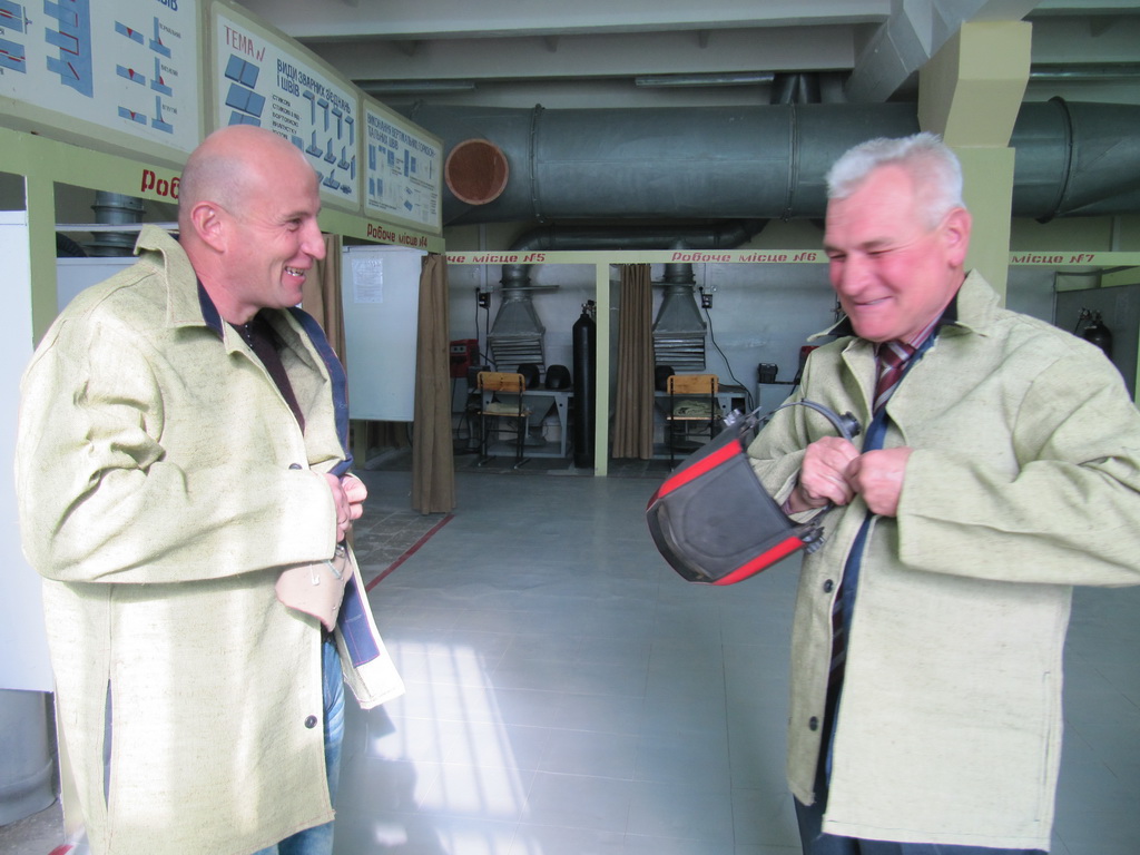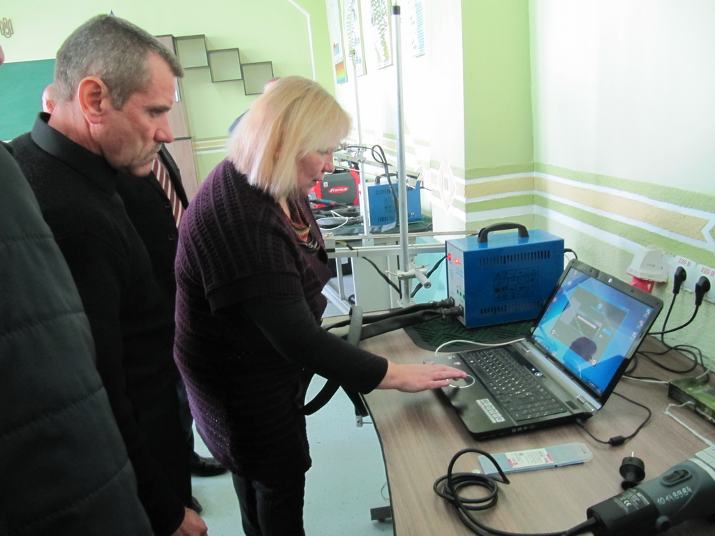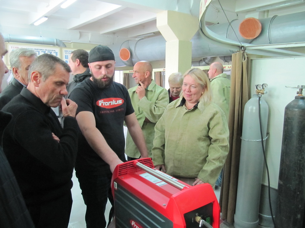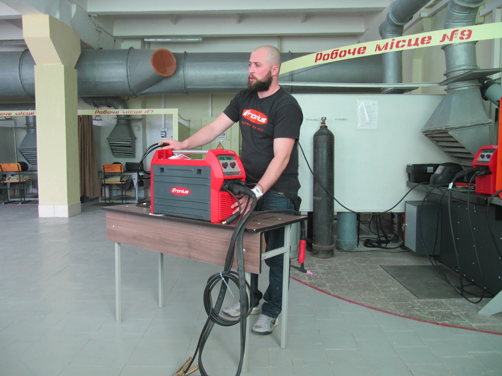 Представник австрійської фірми «Фроніус» Дмитро Брандіс і майстер виробничого навчання ВПУ № 7 м. Калуша Людмила Струкова провели презентацію обладнання і демонстрацію використання різних режимів механізованого зварювання.