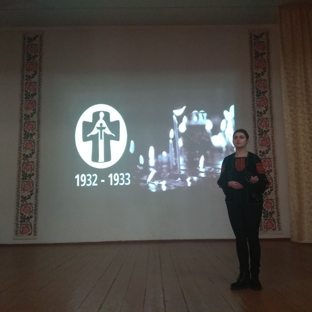 Викладач історії Мирослава Михайлівна Мазур розповіла присутнім про жахи голоду 1932-1933 років, про загибель мільйонів людей, про трагізм, який ховається за словом «голодомор». Хвилиною скорботи вшанували учасники заходу світлу пам’ять невинно убієнних голодом.