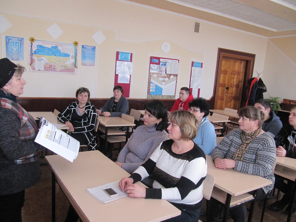 Луцька В.К., майстер виробничого навчання і керівник Центру, який функціонує на базі ВПУ №7 м. Калуша, ознайомлює викладачів, майстрів виробничого навчання та учнів з новою продукцією торгової марки.