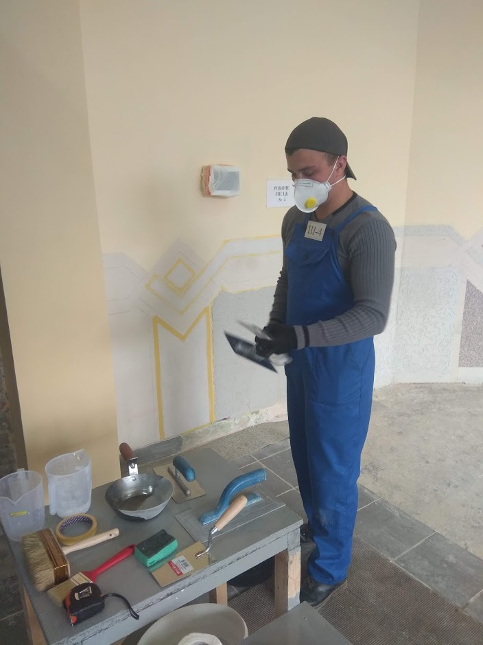 Теоретичний тур передбачав перевірку знань конкурсантів із предметів професійно-теоретичної підготовки у вигляді тестування на персональних комп’ютерах. Під час практичного туру учні виконували два види декоративних штукатурок «Polimin» ШФ та «Polimin мозаїка». Усі учасники були забезпечені робочим місцем, матеріалами та інвентарем.