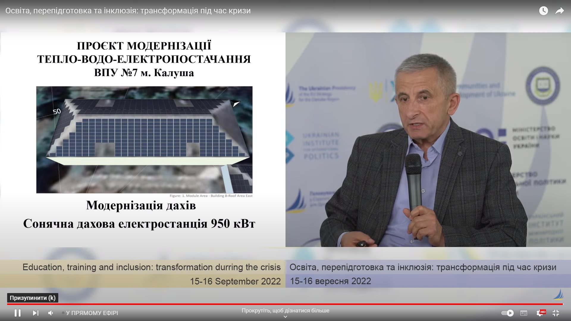 15 вересня 2022 року директор Вищого професійного училища №7 м. Калуша Володимир МЕЛЬНИК презентував напрямки роботи зеленої трансформації закладу освіти на Міжнародній освітній конференції «Освіта, перепідготовка та інклюзія: трансформація під час кризи».