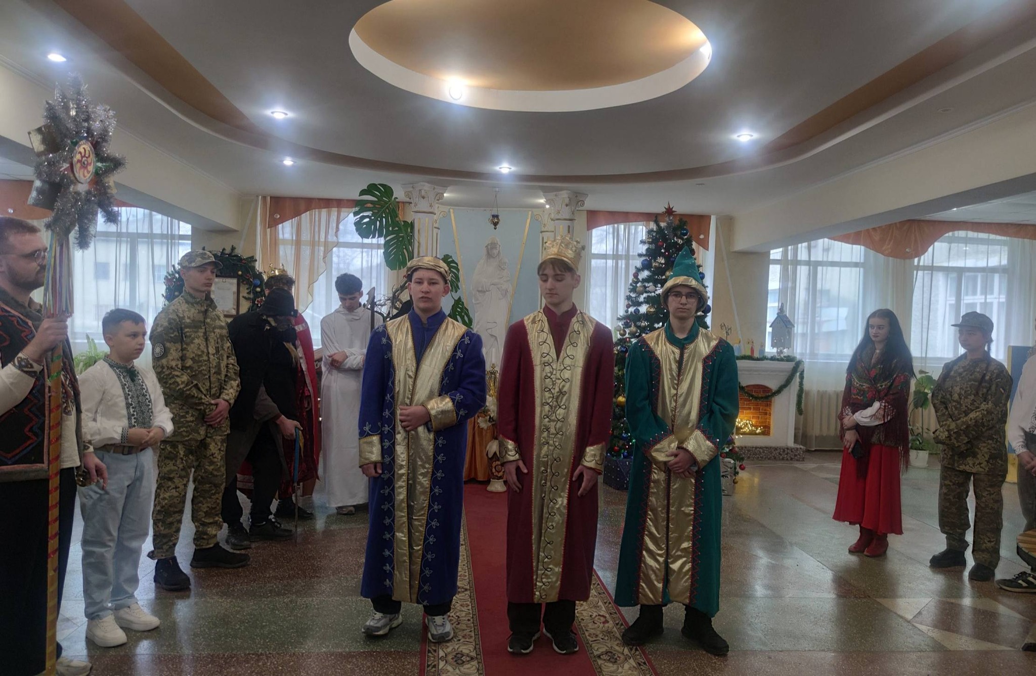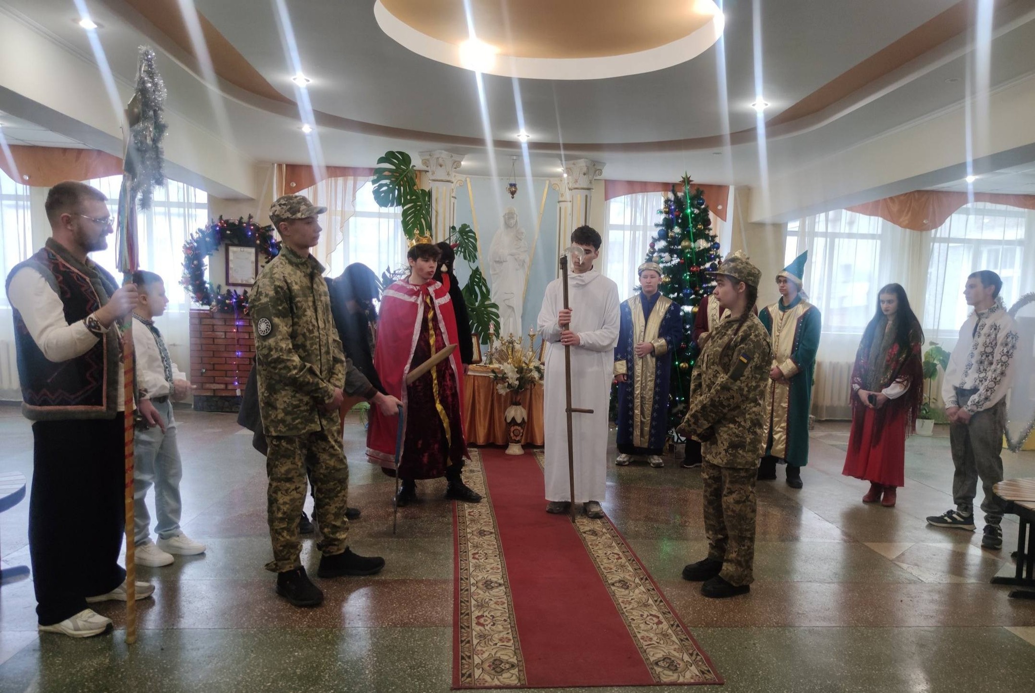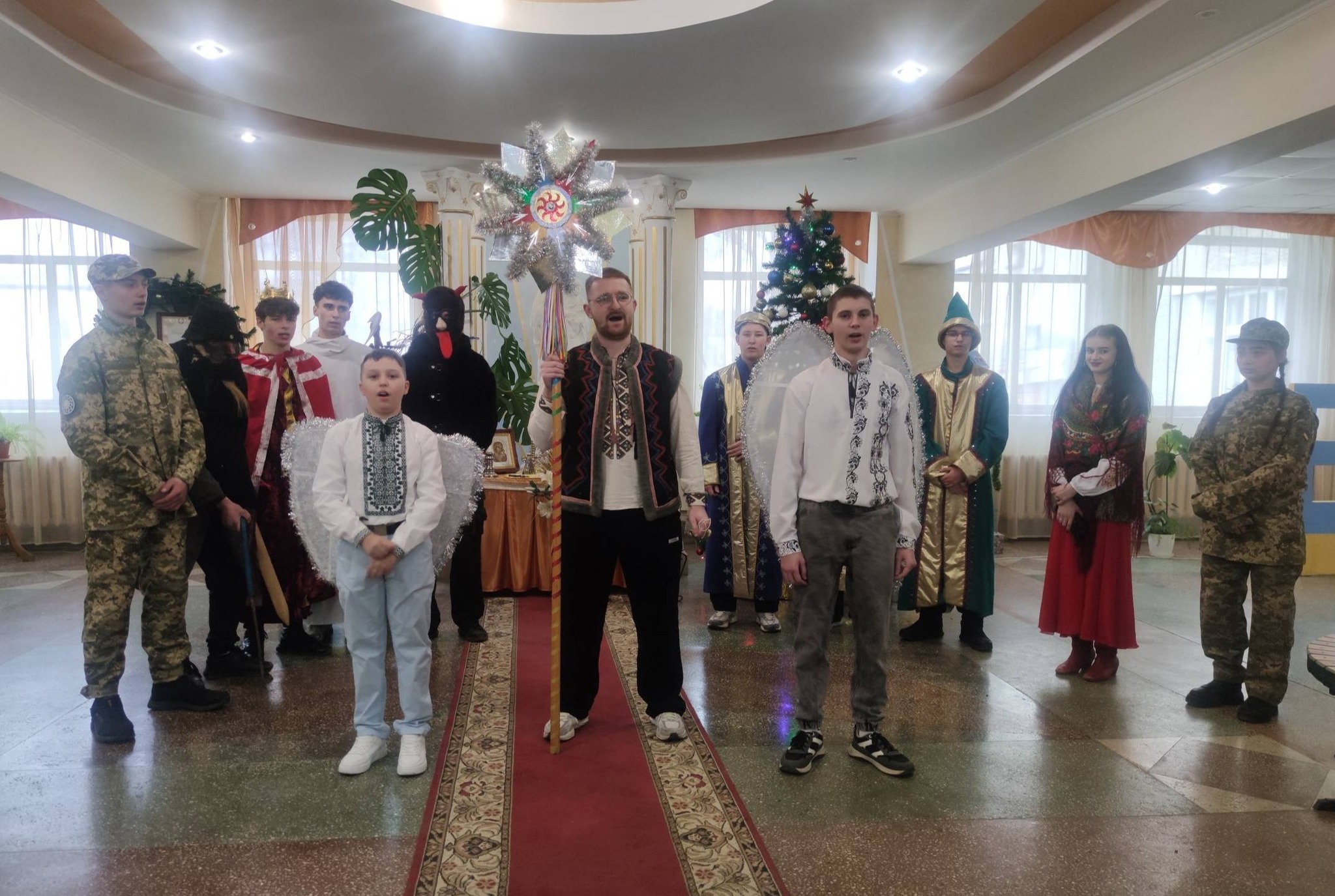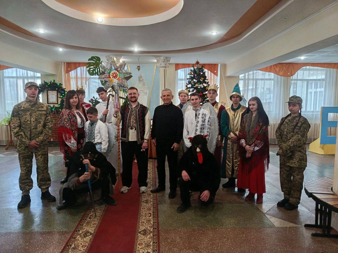 Студенти завітали з вертепом, щоб привітати колектив та здобувачів освіти з прийдешніми святами. Колядки, щирі побажання та світла атмосфера наповнили наш заклад теплом і тим духом єдності, який приносить лише Різдво.