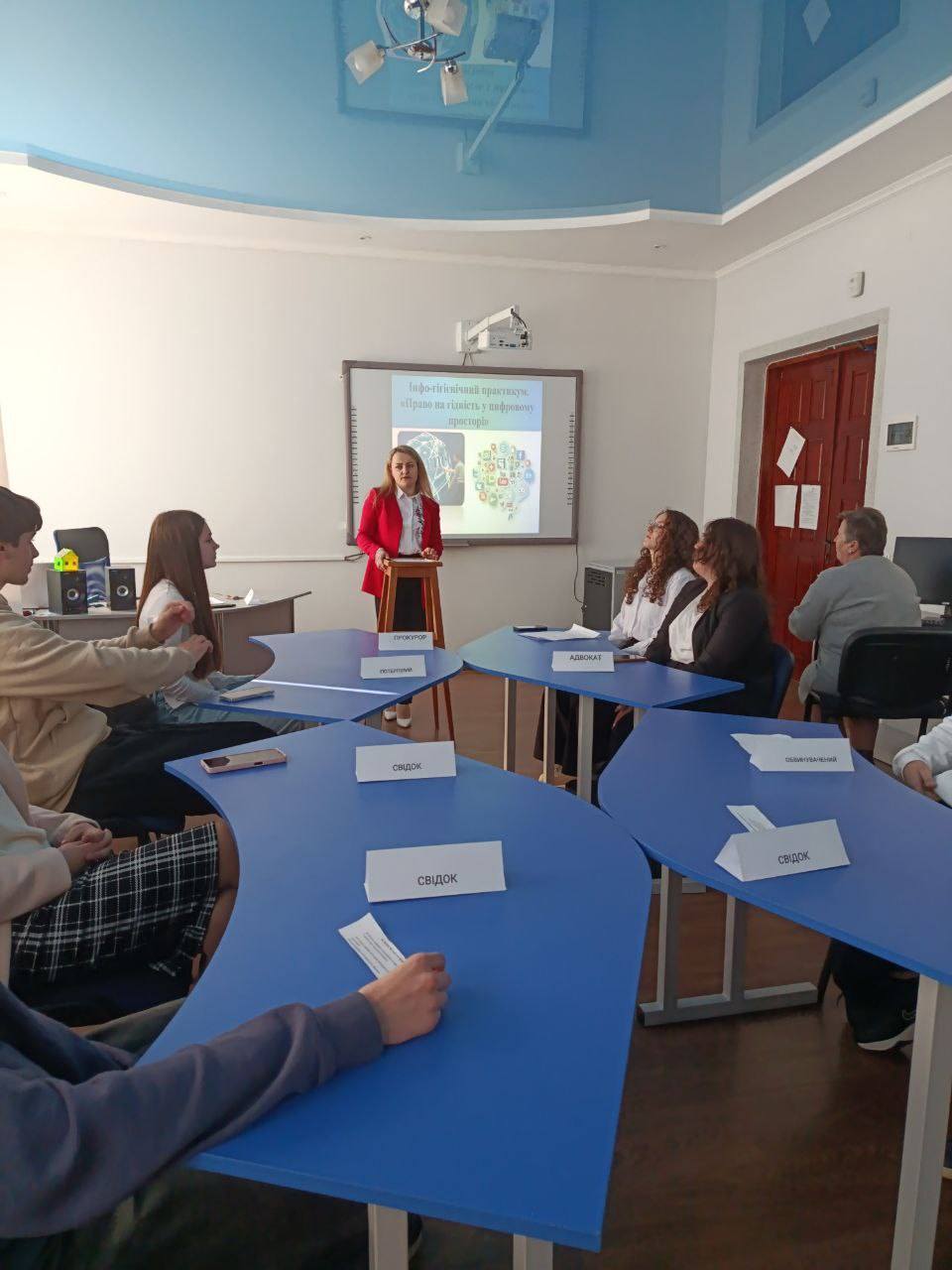 Студенти виступали в ролі «суддів», «адвокатів», «прокурорів» і «свідків», розглядаючи справи, що відображають реальні ситуації з життя у цифровому середовищі.
